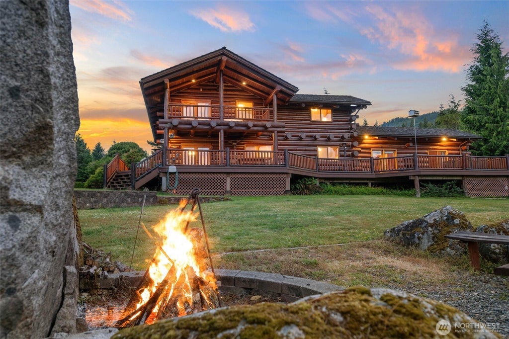 Experience this picturesque RH-styled retreat on the South-end of Lake Whatcom. Set on 2+ acres with 600+ feet of shared BEACHFRONT and dock access just down the street. This turn-key home blends rustic luxury with modern updates. The newer kitchen opens to dining with French doors to an expansive deck and hot tub—perfect for sunbathing and party's. The great room features vaulted ceilings, exposed beams, and a cozy stone-surround wood stove. The very spacious primary suite offers a NEW spa bath, large walk-in-closet, French doors to office and private terrace with peekaboo lake views. With 3 beds, a den, bonus room with sleeping loft, orchard, and a HUGE natural rock fire pit, this is lakeside living at its finest. Ideal for VRBO or STR.
