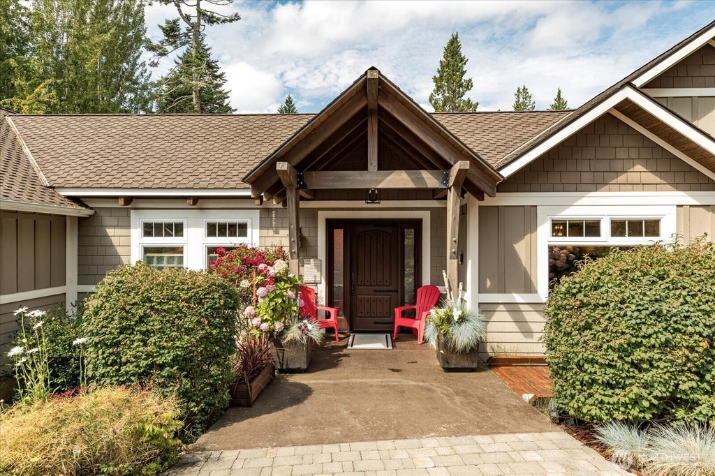 Nestled in sought-after Gibraltar Heights, this beautifully updated home blends Northwest-inspired architecture with modern luxury. Vaulted ceilings with exposed beams and expansive windows create a light-filled, welcoming ambiance. The main level features Brazilian cherry floors, a dramatic living room, formal dining, home office, family room, and a tranquil primary suite. The chef’s kitchen includes high-end designer appliances, ideal for entertaining. The lower level offers a second primary suite, slate tile floors, a custom wine cellar with copper sink, bonus room, and third bedroom—perfect for guests or multigenerational living. Additional highlights a 50-year Paramount roof, spa-like baths (2015 & 2018) & premium finishes throughout.