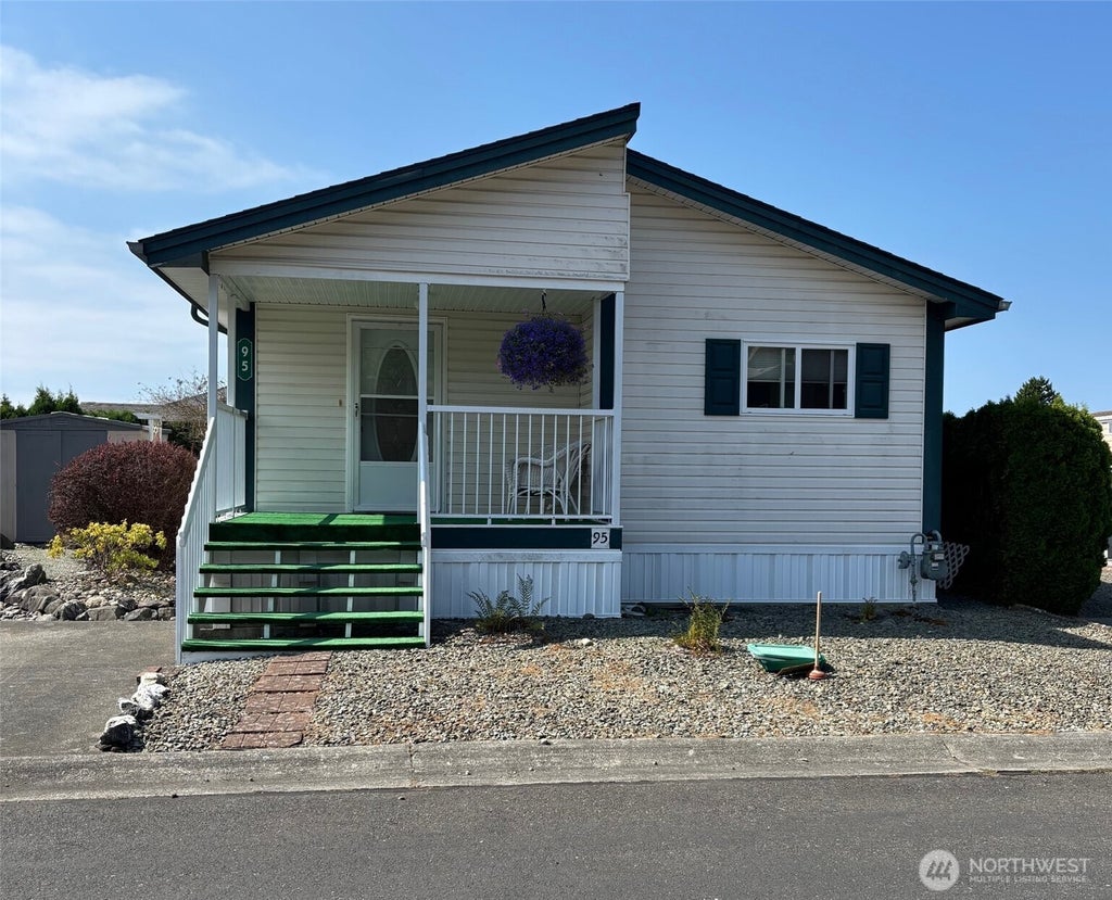 Charming 2-bedroom, 1-bath, 870 sq. ft. home on a year-round occupancy lot. Enjoy a welcoming covered front porch and a well-designed layout featuring a gas freestanding stove and all appliances included, plus $5,000 credit for carpet update! Ideally located just minutes from the bay, with shops, restaurants, and the beach close by. Situated in the sought-after gated community of Latitude 49 Park in Birch Bay, offering a peaceful setting and two dedicated parking spaces. Community amenities include a clubhouse, pool, pickleball courts, exercise room, laundry facilities, and more.